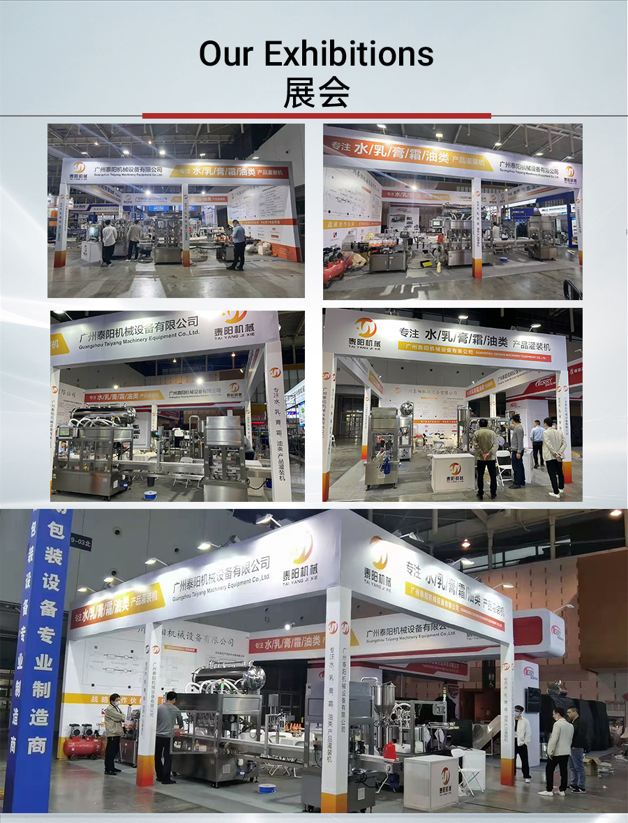 Taiyang Machinery Equipment Co., Ltd., Guangzhou City, Guangdong Province-də yerləşir. Şirkətimiz, tədqiqat və inkişaf, istehsal, satış, satış maşınları, qablaşdırma maşınları, etiketləmə maşınları və digər mexaniki avadanlıqların satışında, dəriyə qulluq, makiyaj, yuyulma və gündəlik kimyəvi mayelər, losyonlar, məlhəmlərin, kremlər, mumlar və yağların avtomatik xəttinə diqqət yetirən bir inkişaf edən bir texnologiya müəssisəsidir. 2017-ci ildə, etibarlı keyfiyyət, münasib qiymətlərlə, peşəkar xidmətlər və yaxşı nüfuza sahib olduğundan, avadanlıqlarımızın 20-dən çox əyalət və xarici əyalət və ixracat edib. Sənaye tanınmış "izləmə doldurma metodunun" iniskarıyıq. Müştərilərin bir çox işçi qüvvəsinə qənaət edərkən, müştərilərin aşağı qiymətə investisiya qoyulmasına və yüksək səmərəliliyə qənaət etməyə imkan verən səmərəliliyi və sabitliyin yaxşılaşdırılması üçün daim avadanlıqları artırırıq.